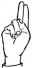 На ћирилици написано ВОЈИН СИКИРАШ састоји се из 12 слова [?]. Исписано ћириличном једноручном азбуком за глувонеме: